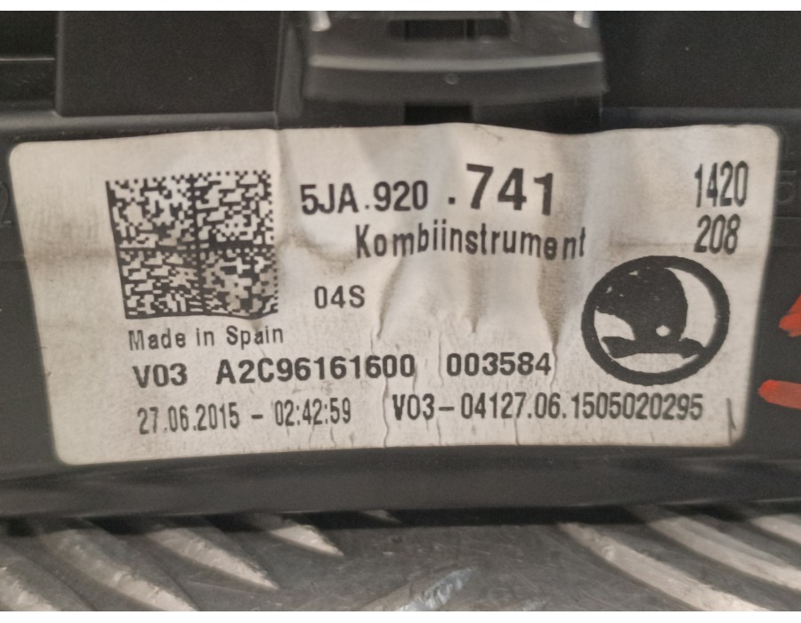 Recambio de cuadro instrumentos para skoda rapid 1.6 tdi dpf referencia OEM IAM 5JA920741  A2C96161600