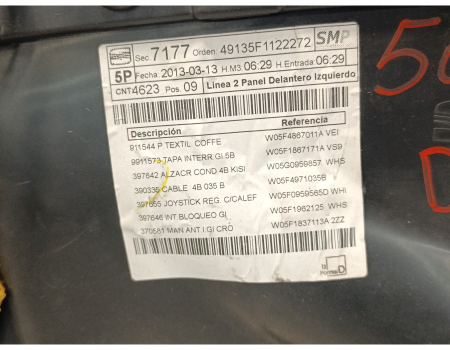 GUARNECIDO PUERTA DELANTERA IZQUIERDA 5F4867131L